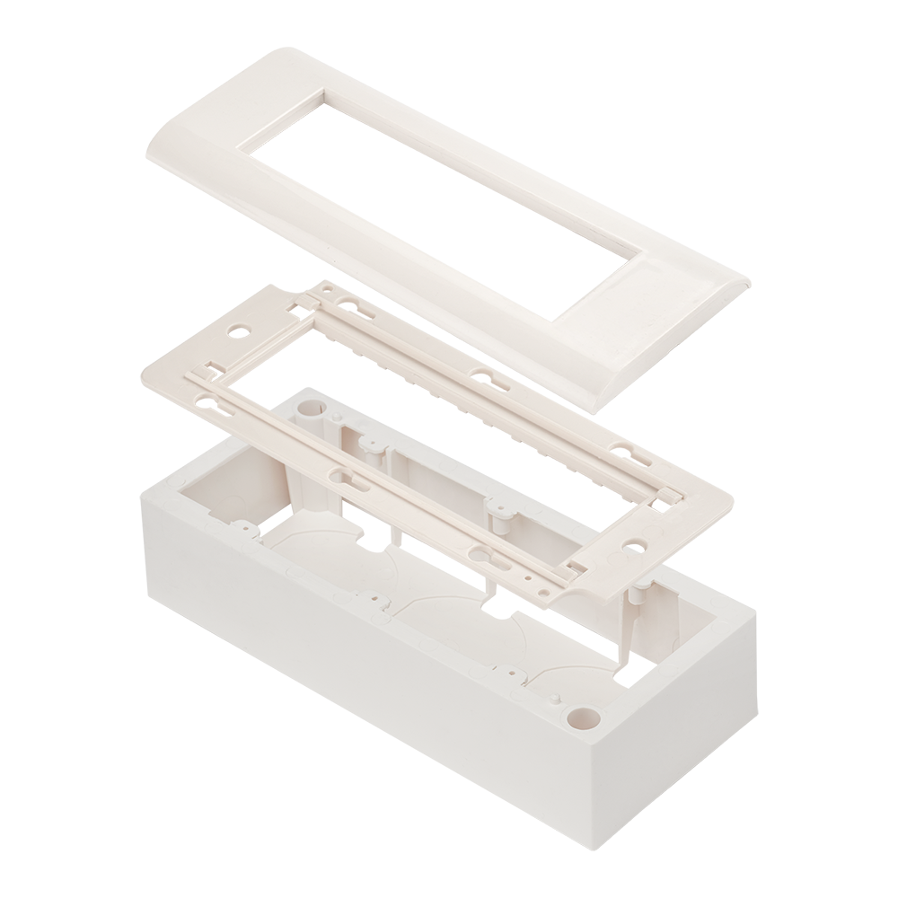 Белые лицевые рамки Французcкого стандарта 45х135 предназначены для использования в трехпортовых электрических, трёх/шестипортовых телекоммуникационных, или комбинированных розетках. Устанавливаются с помощью защелок на суппорты LAN-MF45x135 и LAN-PF45x135. Легко снимаются с помощью отвертки. Варианты использования данной продукции: Типовые сборки телекоммуникационных розеток на компонентах LANMASTER и TWT |