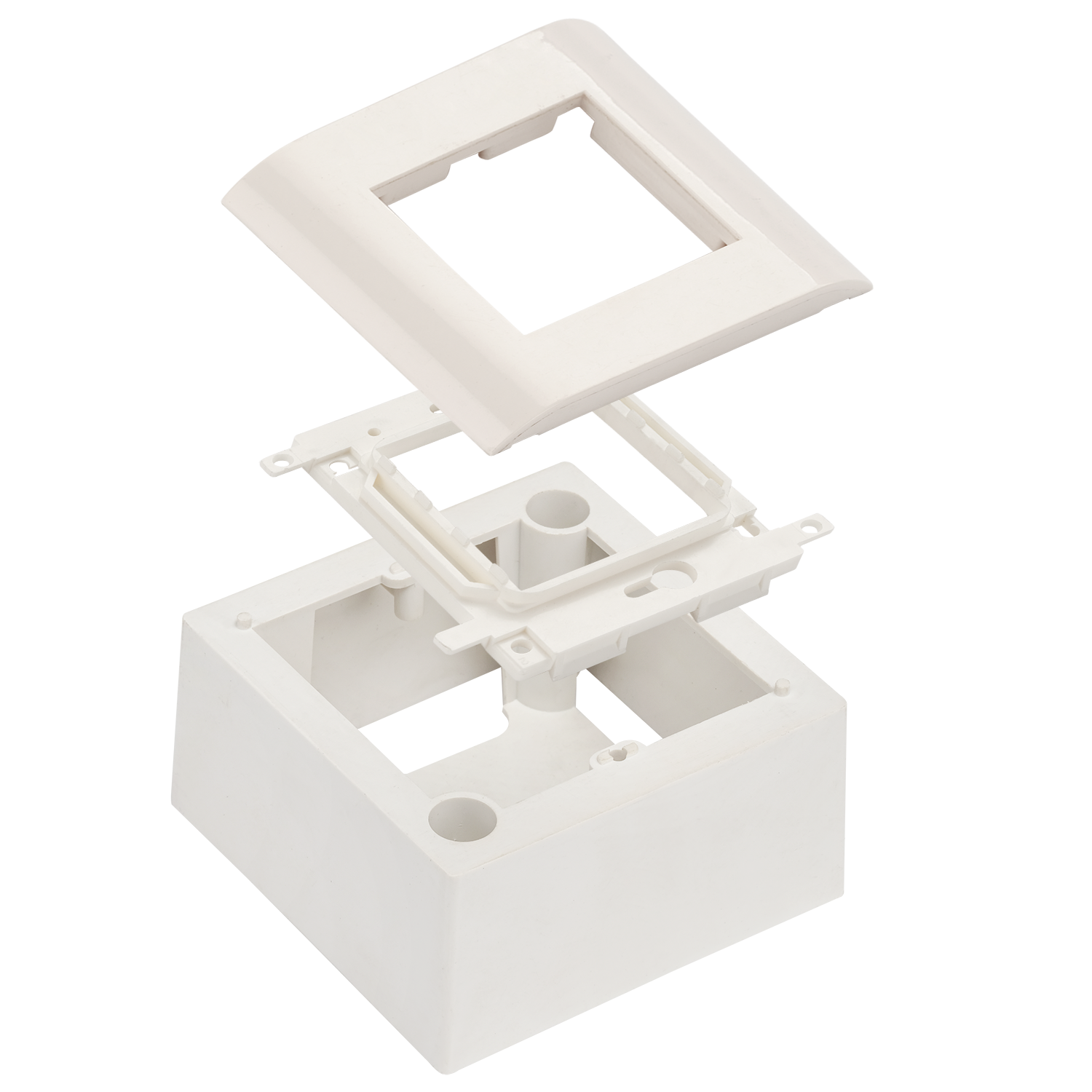 Лицевые рамки Французcкого стандарта 45х45 предназначены для использования в однопортовых электрических или одно/двухпортовых телекоммуникационных розетках. Варианты сборки рамки: