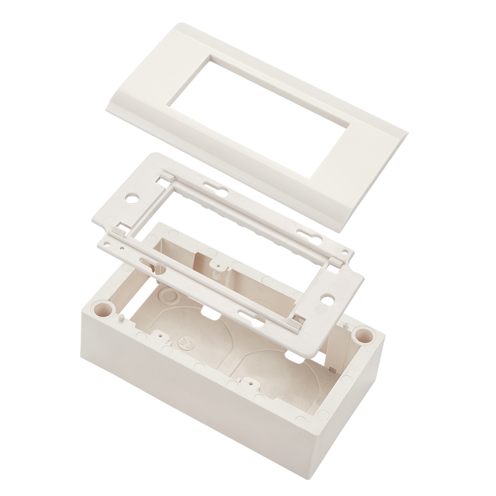 Лицевые рамки Французcкого стандарта 45х90 предназначены для использования в двухпортовых электрических, трёх/четырёхпортовых телекоммуникационных, или комбинированных розетках. Варианты сборки рамки: