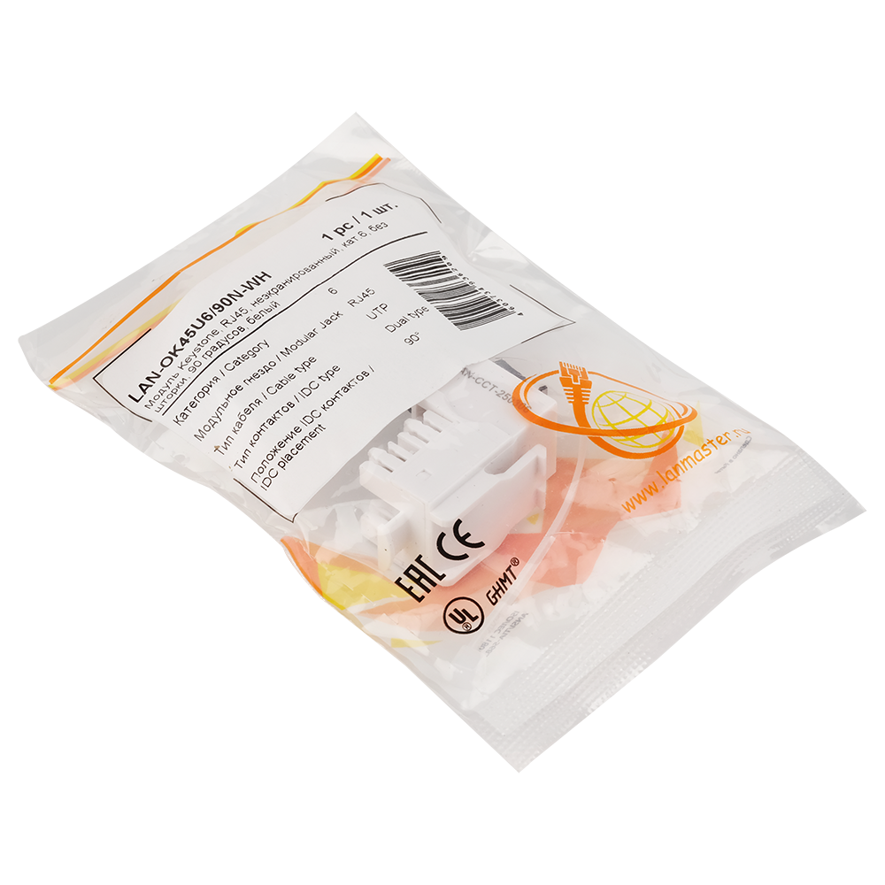 Модуль Keystone, RJ45, неэкранированный, кат.6, без шторки, 90 градусов, белый