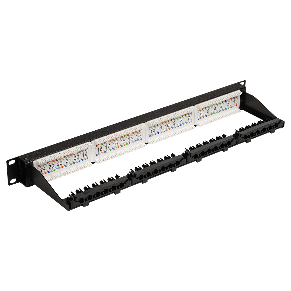 Патч-панель 19", 24 порта RJ45, неэкранированная, кат.6, 1U, с задним органайзером с фиксаторами кабеля