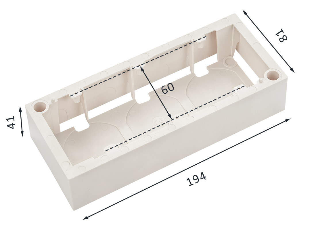 Накладные пластиковые коробки для электроустановочных изделий серии Mosaic, а также слаботочных розеток того же стандарта. Предназначены для установки на них суппортов (LAN-MF45x45\90\135 и LAN-PF45x45\90\135) с накладками соответствующего размера. Поставляются трех основных типоразмеров, для суппортов 45х45, 45х90 и 45х135. Материал ПВХ. Цвет - белый (RAL 9010).