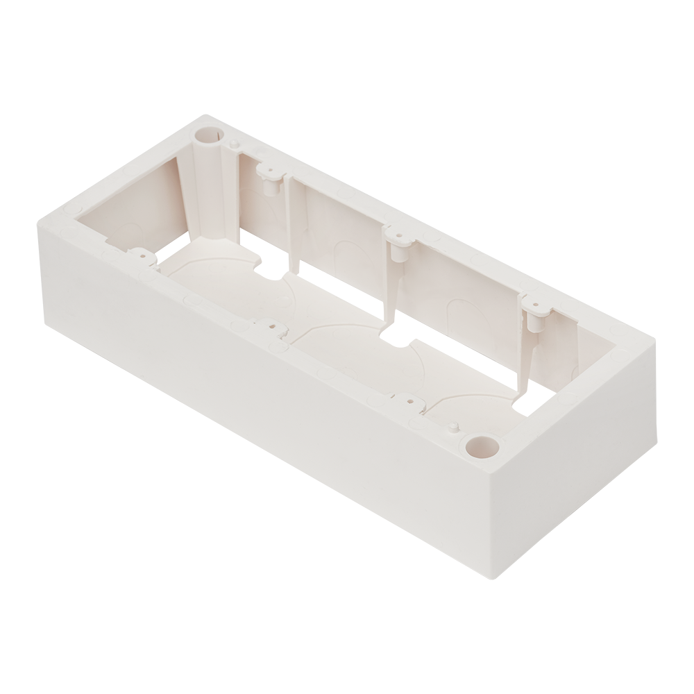 Накладные пластиковые коробки для электроустановочных изделий серии Mosaic, а также слаботочных розеток того же стандарта. Предназначены для установки на них суппортов (LAN-MF45x45\90\135 и LAN-PF45x45\90\135) с накладками соответствующего размера. Поставляются трех основных типоразмеров, для суппортов 45х45, 45х90 и 45х135. Материал ПВХ. Цвет - белый (RAL 9010).